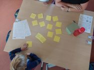 In den ersten Klassen wird derzeit geknetet, auf Seilen gelaufen, im Sand geschrieben, mit Knöpfen Linien nachgefahren und an vielen weiteren Stationen gelernt. Beim Erlernen der Buchstaben und Zahlen ist es für Schulanfänger besonders wichtig, die Bewegungsabläufe mit allen Sinnen zu erkunden. Das macht allen großen Spaß!